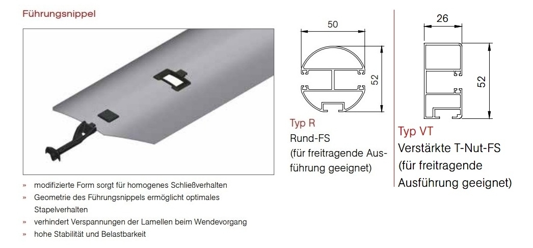 - ausgestattet mit 80 mm nippelgeführten Flachlamellen in vielen Farben lieferbar